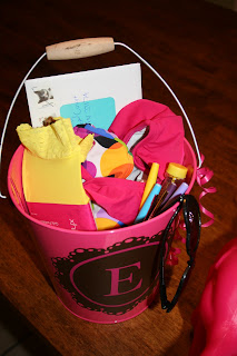So last night while moping the floors, getting ready for a garage sale, packing Easter eggs for our hunt, the Easter bunny got the baskets together. I have to go out of town the week before Easter so I need to know everything is "ready" while I am gone. So the bunny and I put everything together. I got the buckets from the dollar section, got the vinyl letters on etsy. I would not normally buy all the same color but that is all they had in the buckets and the letters were cheaper all the same color too. Emily and Ashley want trash cans so I figure after Easter the buckets can be used as trash cans too. Every basket has new sun glasses, bubbles, and a piece of clothing. They each got a watering can I am really excited about the water cans because I found a pink dinosaur for Ashley how perfect is that? I got Emily a pink tea pot, and Chloe got a pink elephant.